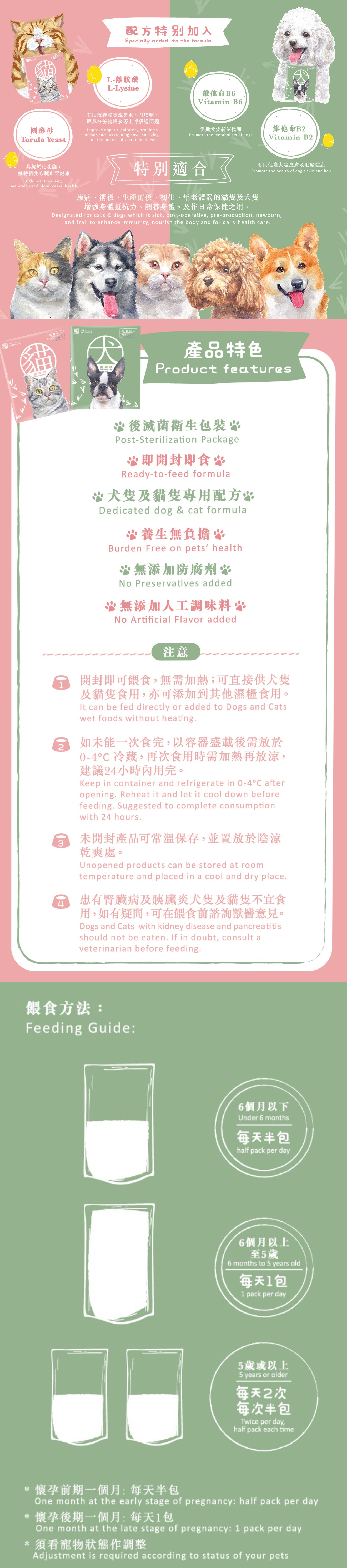 ✨ 特別適合患病・術後、生產前後、初生、年老體弱的貓隻及犬隻增強身體抵抗力調養身體,及作日常保健之用。