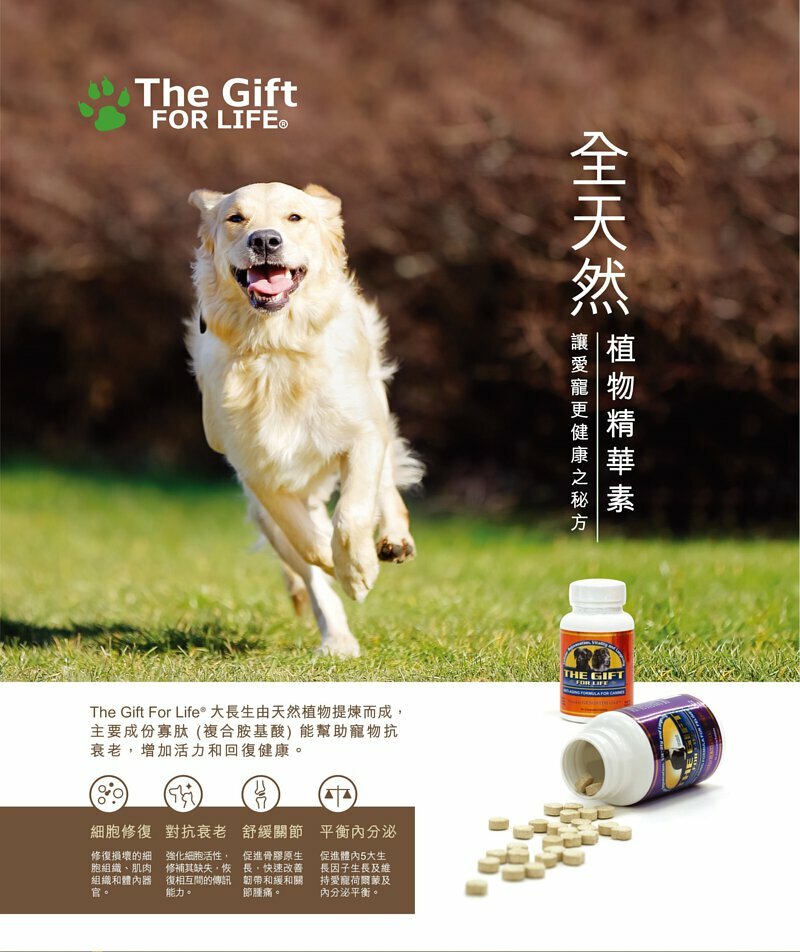 由天然植物提煉的大長生全天然植物精華素能針對各器官進行補充。能加速寵物身體的新陳代謝,使愛寵回復青春及活力。